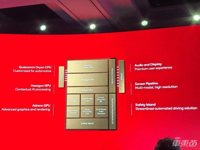 根据高通技术公司汽车、行业解决方案和云业务集团总经理 Nakul Duggal 与上一代产品相比,这两种产品采用了统一的结构:高通专门为汽车定制的高通 Oryon CPU,与上一代相比,速率提高到上一代。 3 两倍;同时还配备了面向汽车应用的设计。 Adreno GPU,性能也有所提高 3 倍;它面向多模态 AI 专门设计的神经网络处理器(NPU),与上一代相比,性能有所提高 12 倍。