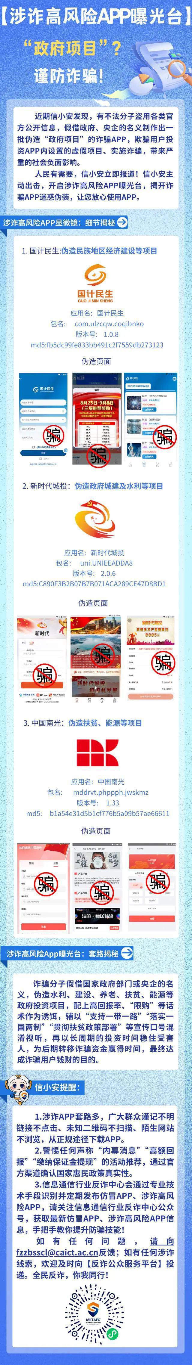 近日,工信部反诈骗专班微信微信官方账号曝光一批伪造工作。 " 政府项目 " 的诈骗 App:新时期国计民生,城投,中国南光。