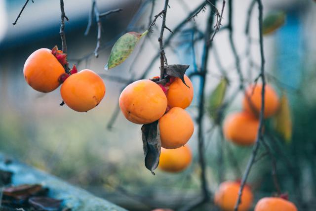 “初霜打柿子红如火”,初霜只是柿子成熟的时候。此时柿子皮薄肉多,色泽鲜艳,营养丰富,民间也有吃好柿子迎好事的好意。