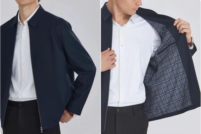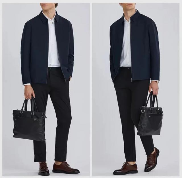 再看西装款,这种西服在面料和功能上大胆创新,采用尼龙面料制成的西服,其特点是轻盈透气,光泽细致,易于护理。