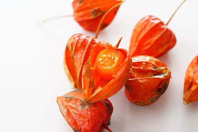 它们所含的挥发性物质也有所不同,一般而言,红菇娘果的味道偏向于清香型,黄菇娘果则偏向于果香型。