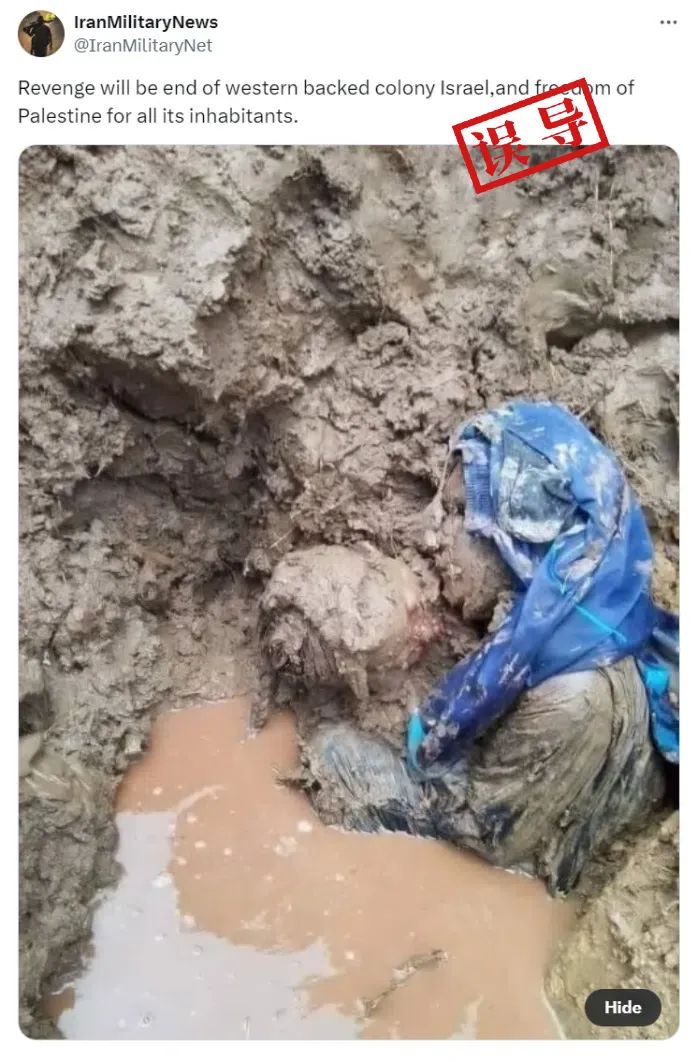 对网爆图片进行反搜后发现,这张图片已于8月30日左右出现,并被多家阿拉伯网络媒体报道。其中,总部位于也门荷台达市的网络媒体Alsahil于8月29日发文称,这张图片来自于一段在社交平台上发布的视频,记录了一个女人的尸体被水和砾石埋在也门北部马赫维特省马尔汉地区的一个洞穴中被发现的过程。