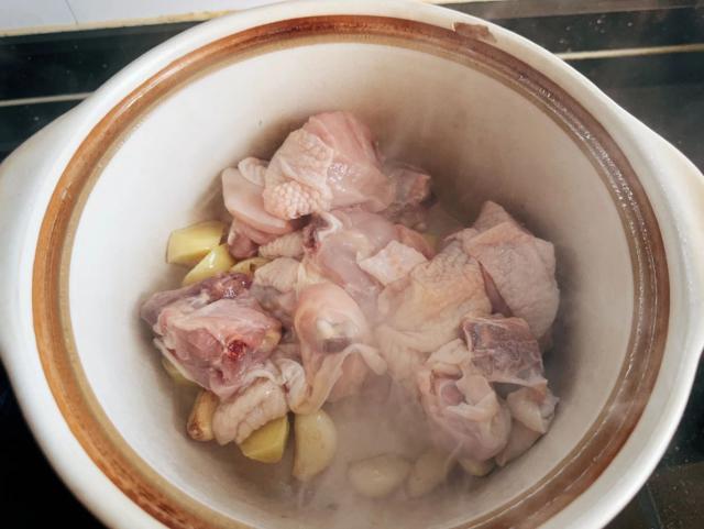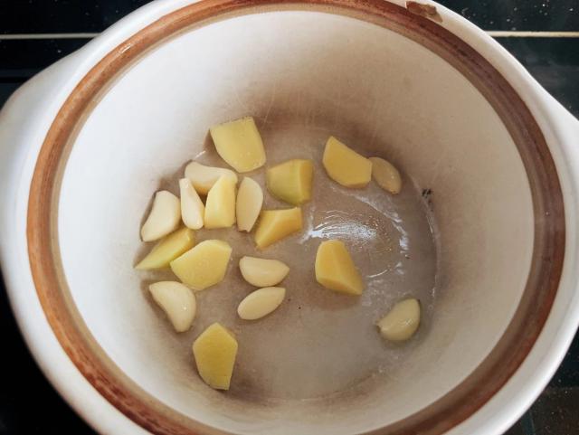 2. 将油放入热锅中,然后加入大蒜、姜块翻炒。