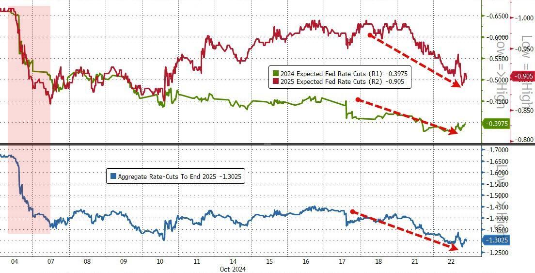 最近的市场定价反映了降息和降温。本周二,根据交换合同的定价,交易员预测美联储将在明年9月降息128。 一个月前,个基点预计将减少195个基点。
