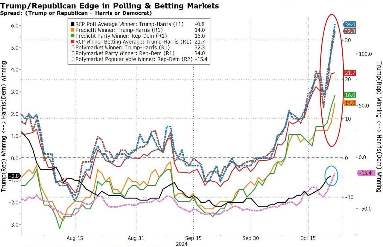 Pimco投资组合经理Mikee债券投资巨头 本周二,Cudzil表示,这一轮美债走势主要来自于过去一个半月强劲的经济数据,也影响了大选前景的焦虑。由于迫使投资者降低大幅降息的预期,稳健的经济数据导致债券市场重新定价。如今,更高的债券收益率也反映出共和党在选举中占据主导地位的概率“更大”,这将有利于股市,但将对长期债券收益率施加压力。