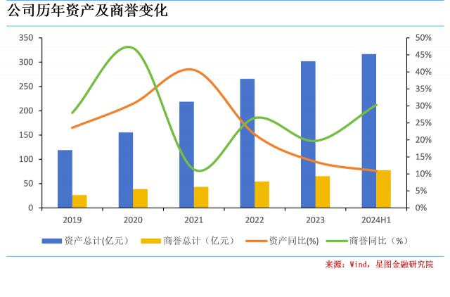 与此同时,公司资产规模迅速扩大。 2019-2023 年 5 在过去的几年里,总资产的增长已经达到 年平均复合增长率为153.78% 26.22%;在这些因素中,信誉上升已经实现。 年平均复合增长率为147.65% 25.45%。2024 今年上半年,总资产同比再次增长 信誉同比增长10.86% 30.31%。