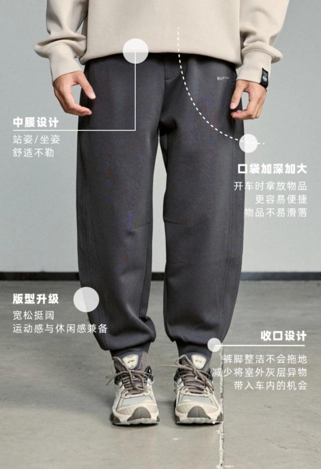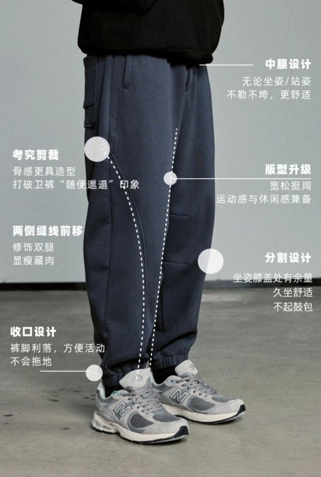 与驾驶日经典束口运动裤相比,收边卫裤整体上会修身一点,穿上后更显腿长和腿瘦。