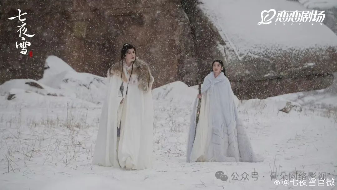 原著《七夜雪》只有十九万字,情节简单,情感留白很多,需要增加和扩展很多情节,改编难度更大。这些增加变化的情节,为了保留原著的意境和风味,不能太甜或太夸张。因此,包括男女在内的男女之间的大部分互动都发生在谷中雪景下的单一场景中。虽然饮酒、吟诗、游戏等推进的情感关系非常古典美学,但过于平缓,缺乏起伏,一直处于情感的小拉扯之中。十年前,这样的作品可能还是有一席之地的,但是被短剧和短视频磨练过的观众并没有这样的精品耐心。