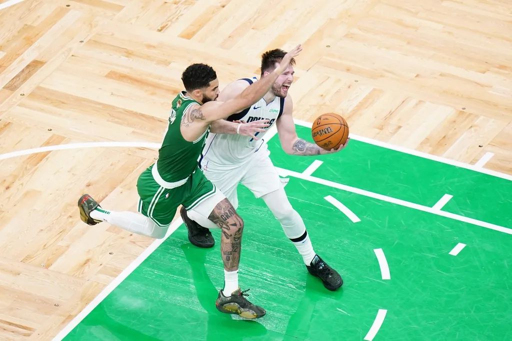 ▲塔图姆和东契奇上赛季NBA总决赛的正面对抗