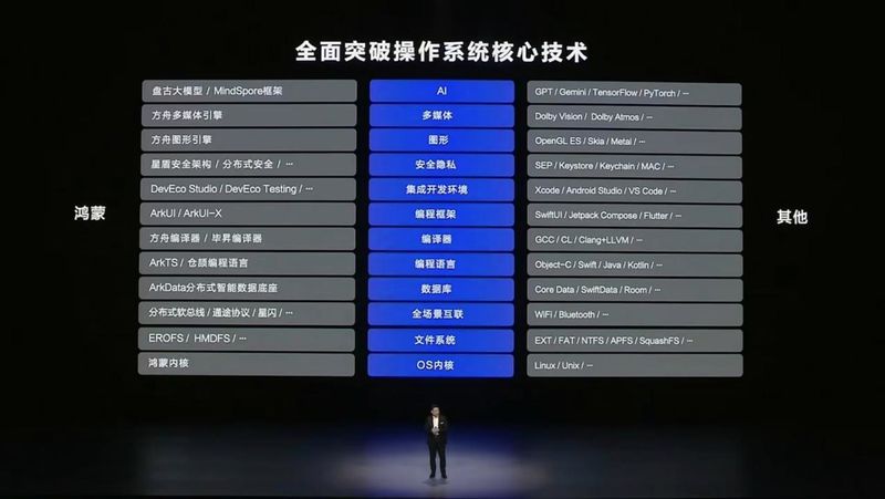 而且在底层,华为已经用鸿蒙系统的核心取代了Linux/Unix的核心,用方舟编译器取代了GCC/CL等,用方舟图形引擎取代了OpenGLES/Skia等。简而言之,鸿蒙系统在底层系统方面与安卓、iOS完全不同,是实实在在的自研。