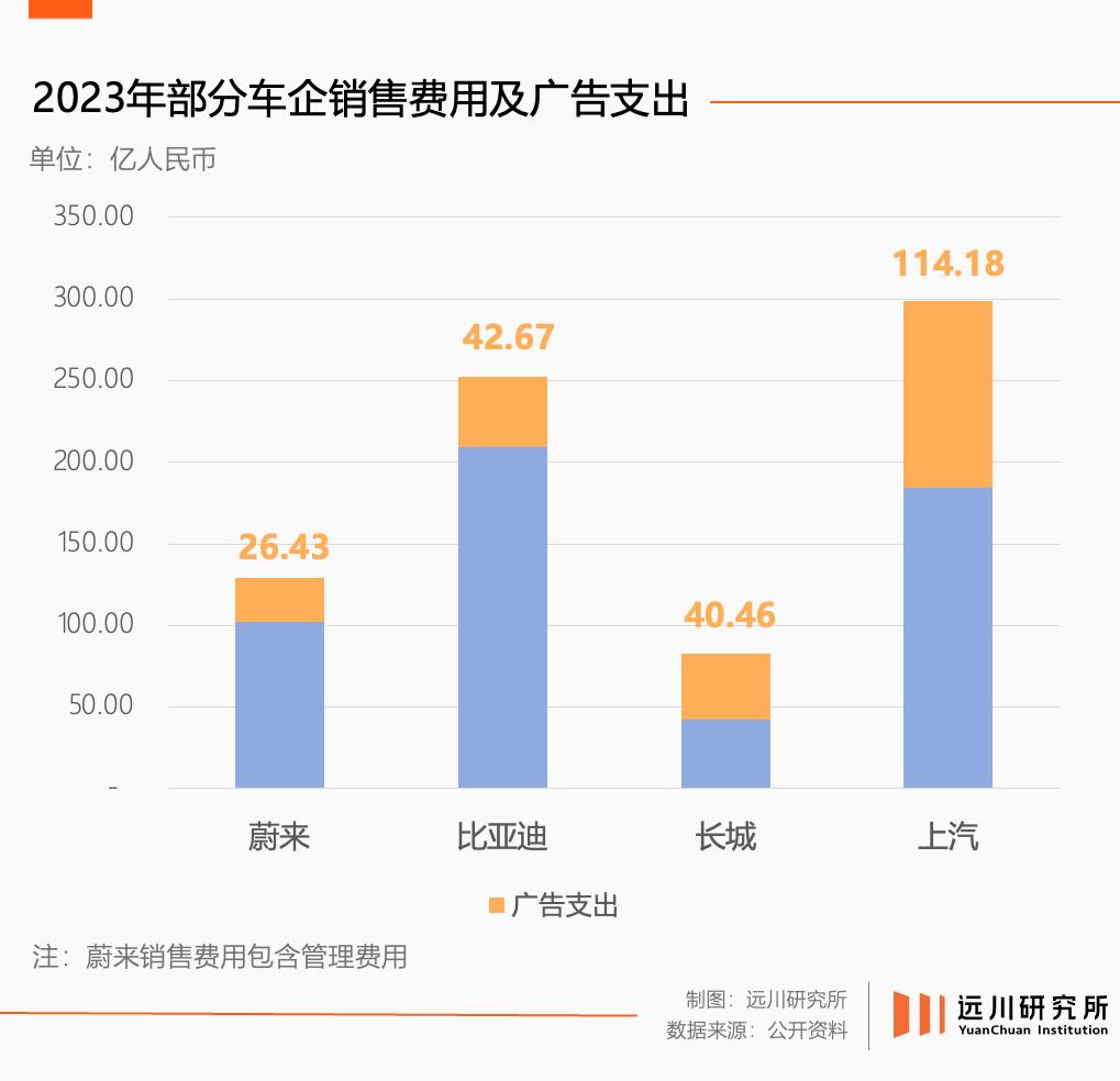 2023年,四家上市车企(SAIC、比亚迪、长城、蔚来)详细披露了广告费用,总共花费了222亿元预算,几乎是去年知乎收入的5.2倍。
