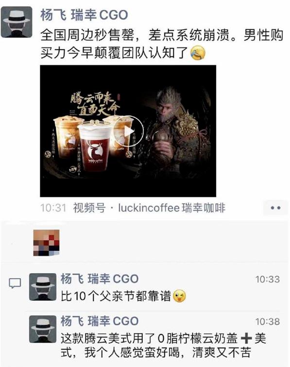 在朋友圈里,瑞幸CGO(首席增长官)杨飞首次宣布重大发现:男性购买力颠覆了团队认知。