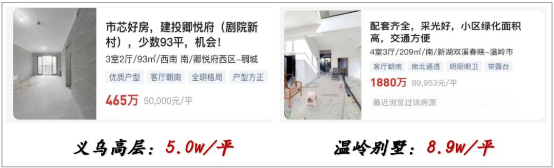 义乌抵达5w/平还是可以预期的,但是作为台州下属县的温岭,别墅项目的挂牌价格几乎接近9w/平,有点夸张。