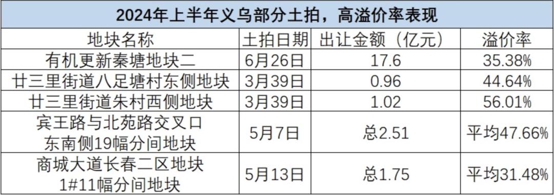 历史上半年义乌的地块,几乎都是极高的溢价。
