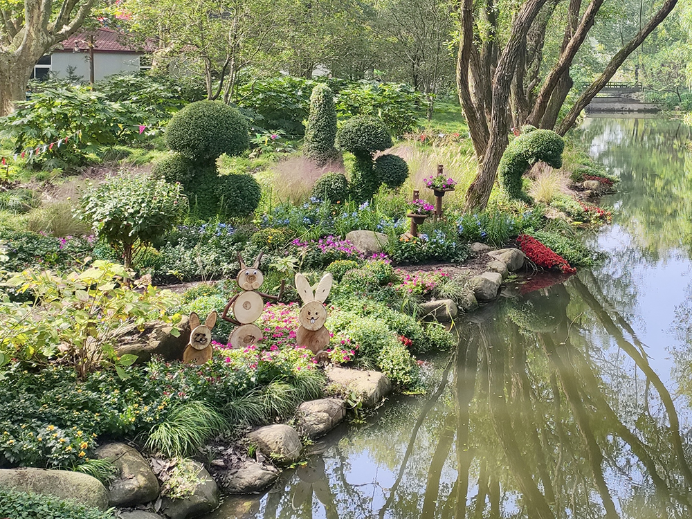 台风倒伏树木“生”花成园艺景观,上海“莫奈花园”再次更新。