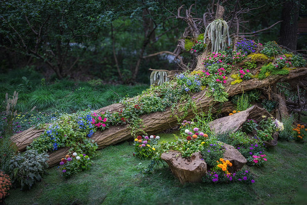 2024年上海菊花展,共青森林公园采用倒伏树木布景。本图均为园方图片。