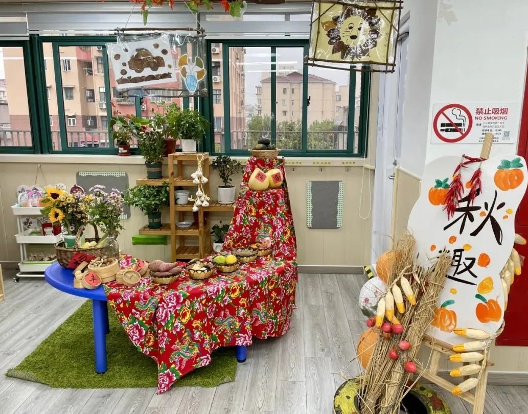 北新泾第三幼儿园环境布置一新。儿童树叶作品与秋景相映成趣,尽显童趣与美丽。