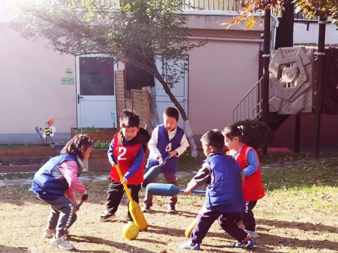 在温暖的秋日阳光下,兆丰幼儿园的孩子们追逐嬉戏,上演了一出“球逢对手”的戏码。