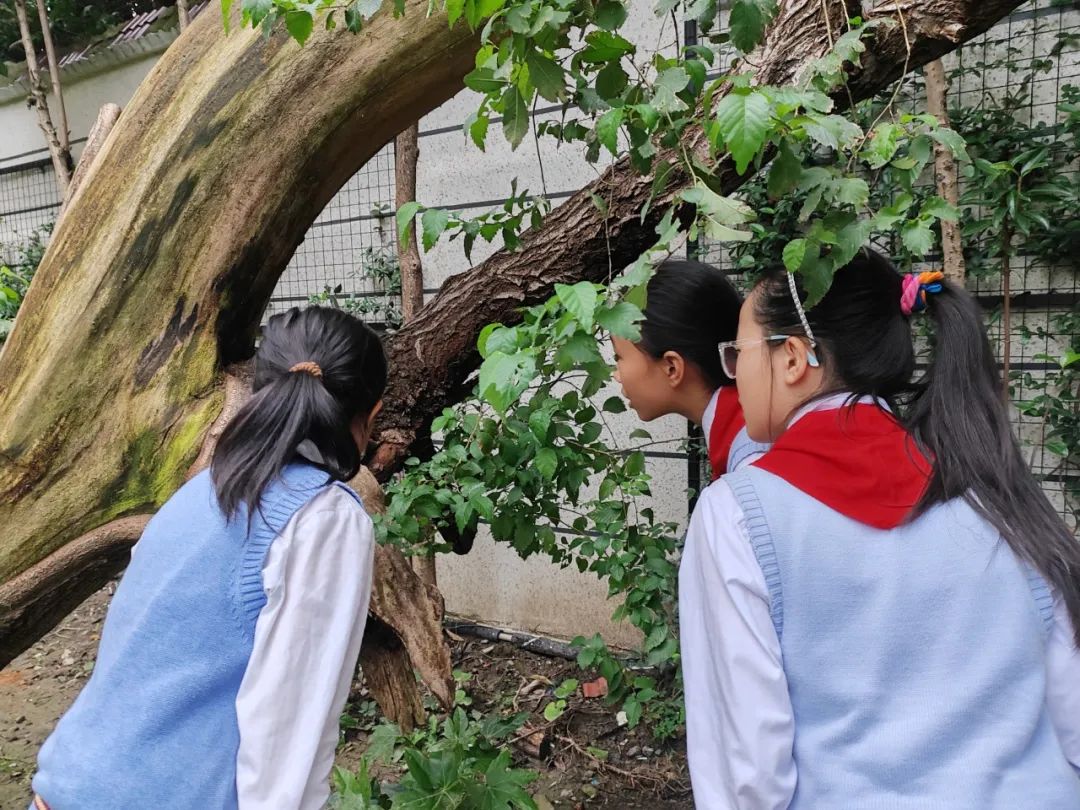 “哇,原来昆虫就是这样生活在树上的!”在专家和老师的带领下,居民和学生们一起走进生活花园,看到了生机勃勃的倒木。“大树倒在地上后,周围的植物可以有更多的阳光,长得很快;倒树本身也可以为土壤提供养分……”专家向居民和学生介绍了大树及其周围生态环境的变化,引起了人们对生态系统的思考。