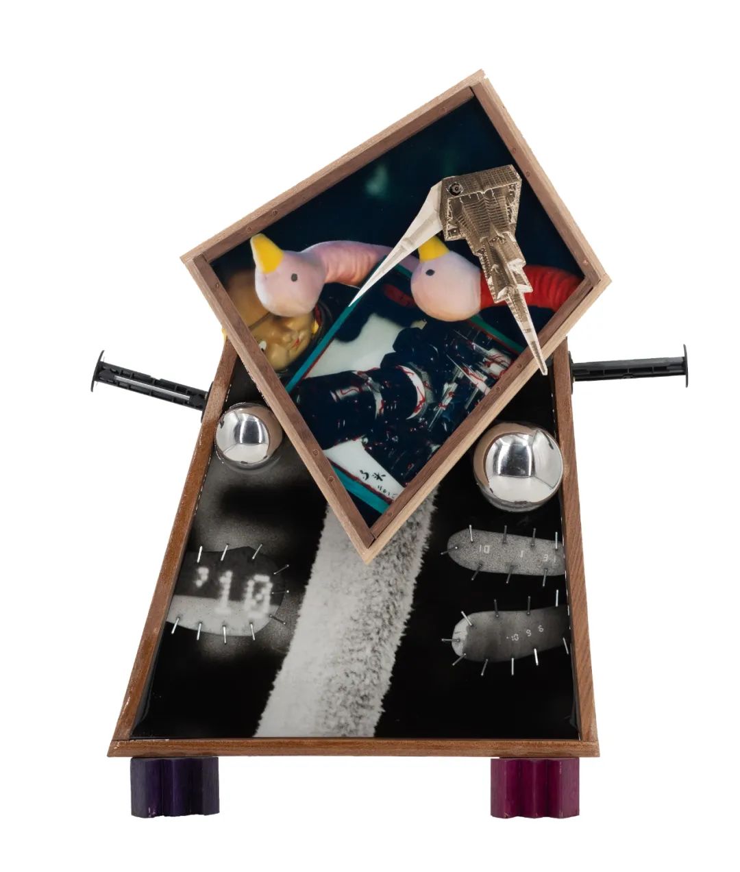 拜影 - 泰姆 06,40.6 x 27 x 2.7cm,照片,电机,不锈钢球,木材,2019