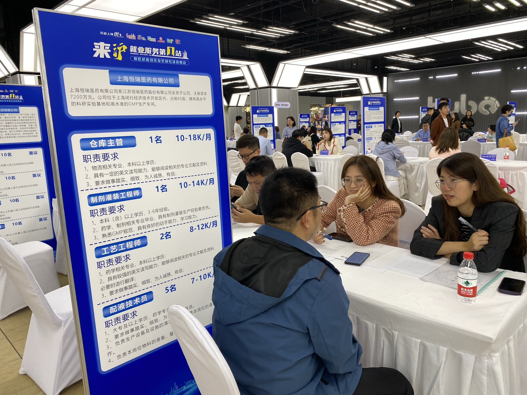 “没想到能参加虹桥火车站的招聘会,登记个人信息找工作,还是挺方便的。”来自安徽的何先生说,他以前从事化学品仓库管理。今天看到一家医药公司招聘仓库主管,月薪1万到1.8万,对于第一次去上海的外国候选人来说很有吸引力。而且他的职位和自己“比较对口,适应快”。