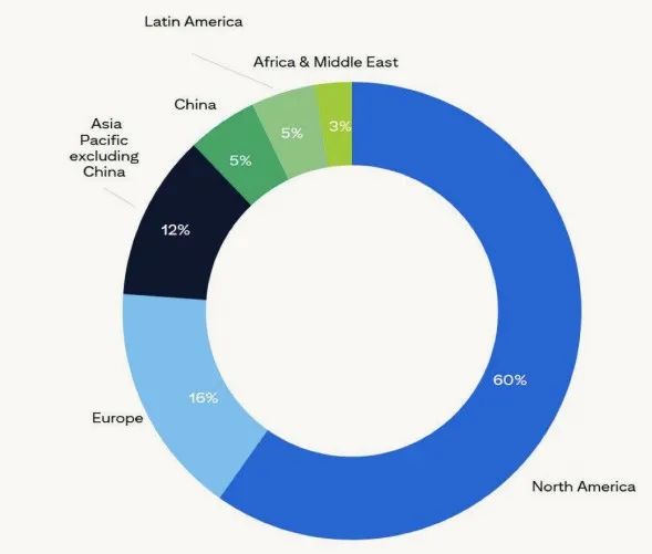 就地区而言,欧洲、中东和非洲家庭办公室对人工智能的投资承诺最高,只有12%的人没有考虑将其作为优先事项。亚太地区强烈关注人工智能(50%)的公开股权投资。