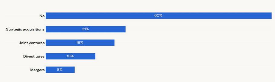 从全球角度来看,约40%的公司家庭办公室正在考虑在未来12个月内进行并购 (M&A) 活动,主要是战略收购或合资企业。北美(71%)是前三大目标地区之一。、在欧洲(45%)和亚太地区(不包括中国)(36%)。只有9%的人提到拉丁美洲。