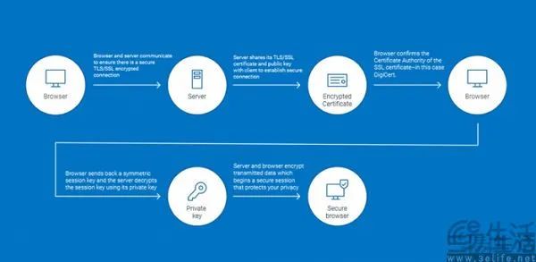 在访问互联网的过程中,用户在浏览器中输入网站后,浏览器会首先检查网站web服务器中存储的数字证书,以便识别服务器。简单来说,数字证书的意义就是在网上证明“我是我”。如果TLC/SSL证书无效,用户会看到一个警告,声称连接不是私人的,这意味着浏览器无法与网站建立安全的加密连接。