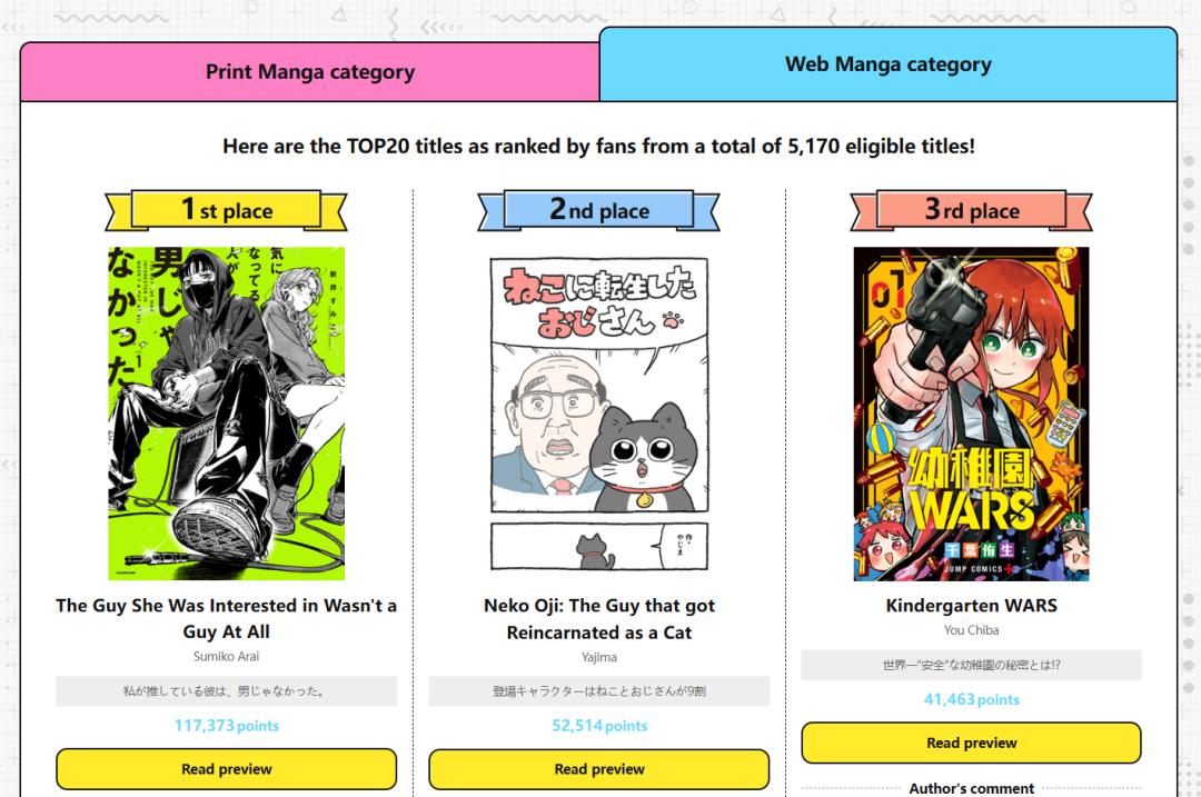 作者《转生成猫的叔叔》やじま从去年二月开始在推特(现X)、每天在Instagram上更新相关内容。每个单词的信息量都不大,大概只有一两张图片,但是很有讨论性,而且内容频繁更新,促使大叔猫的存在感不弱。翻看作者的社交平台账号,你会发现《转生成猫的叔叔》并不是第一部尝试系列网络漫画的作品,而是反响最好的作品。同年九月,以新作为主的大众票选漫画奖“下一部漫画奖2023”获得网络漫画单位第二名。
