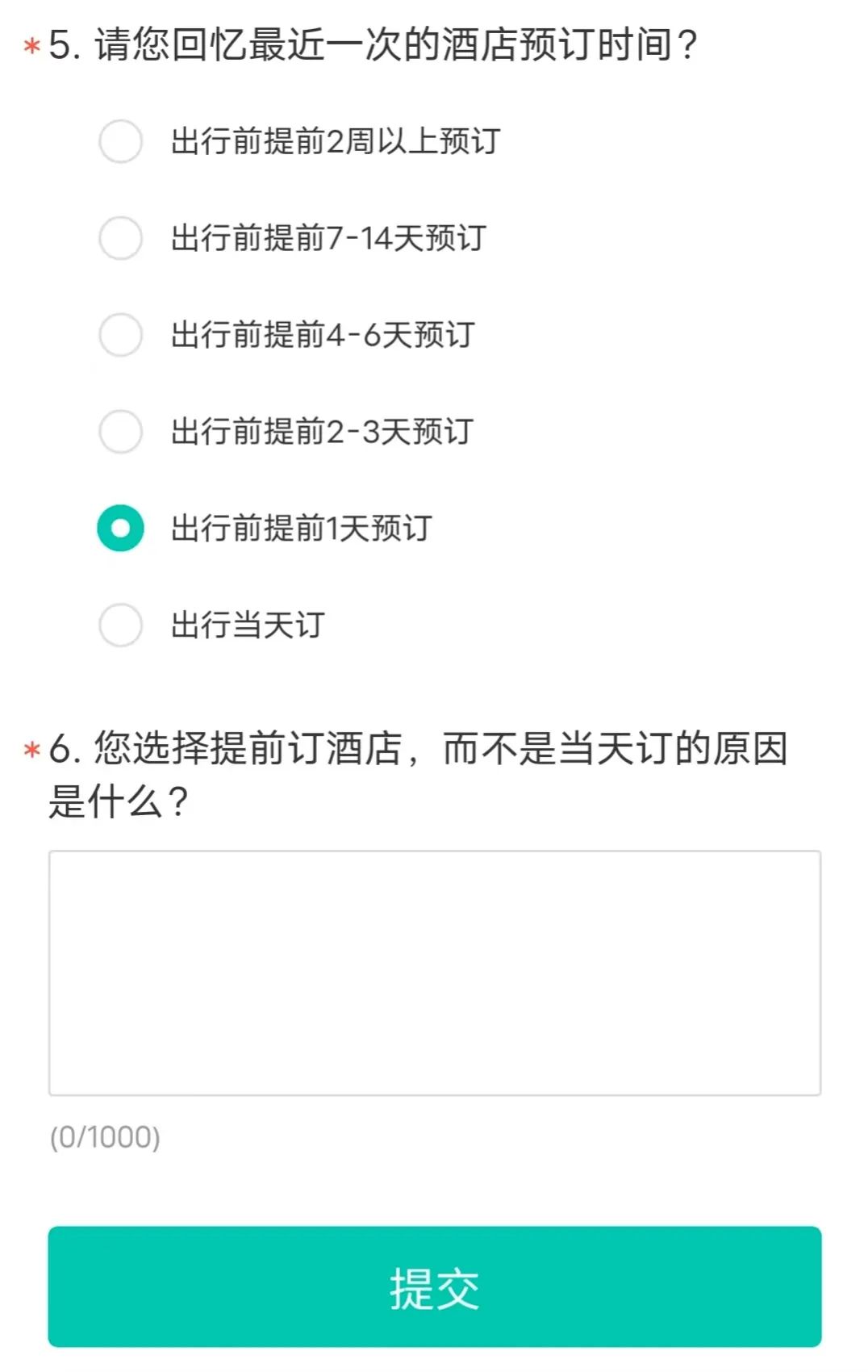 王蕾认为,“先囤后付”是对预购情况的加强,代表着平台主动为客户降低消费门槛。她注意到,9月底,美团在后台推送了与酒旅相关的问卷,最后两个问题是最近酒店预订时间和这种选择的原因。他说:“除最后一天预订的选项外,所有其它选项都是提前预订的,只是提前的选项有多少。在问这些内容之前,我觉得他们也可能在评估什么。”