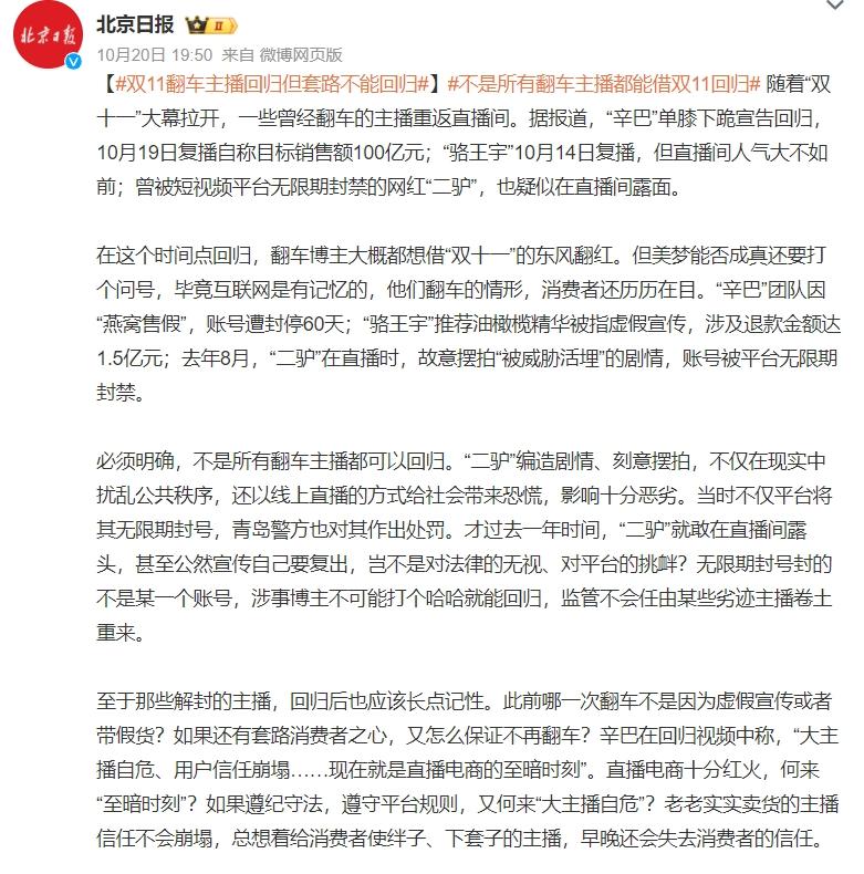 面对直播电商平台的“信任危机”,监管机构和平台的监管以及新政策的实施,为重塑行业秩序提供了有力支持。
