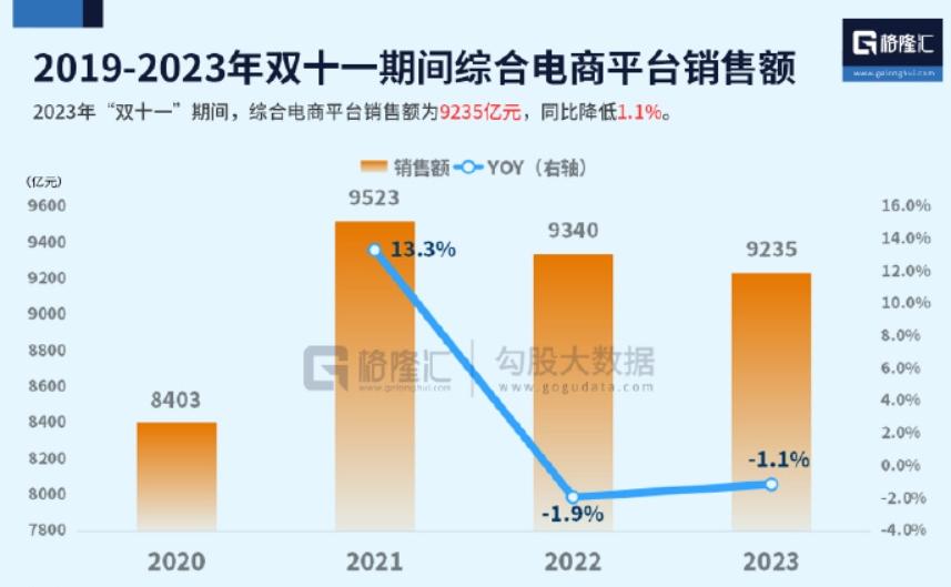 随着2023年电商平台低价竞争进入“白热化”阶段,“双11”直接引爆了全网低价竞争的高潮;即便如此,今年双11的整体营业额并没有实现明显的增长。