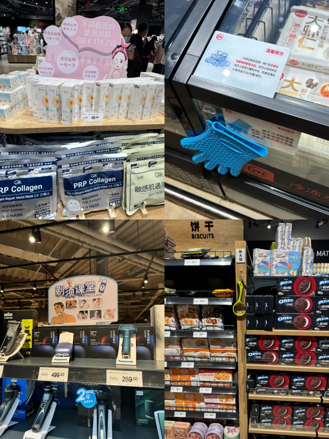 货架旁提供放大镜;冰柜旁提供胶质手套;专门设牌子解释产品用法、内衣裤尺码;生鲜区还提供菜谱;出口处设置可以微波加热、洗手、喝水的便民区域……这些硬性服务确实在传统卖场里从未见过。