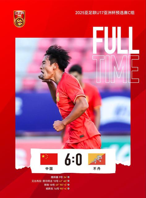 让我们看看另外一场完胜对手的比赛,中国 U16 国少队在 2025 亚足联 U17 亚洲杯资格赛 C 在小组赛中,以 6:0 战胜不丹 U-16 男子足球队,完全击败对手,并在预选赛中取得两连胜。这场比赛完全掌握在中国队的脚底,在比赛中造成了几次威胁。前半场,U16 足球代表队姚俊宇打进一球,但越位第一,魏祥鑫头球破僵;下半场,艾比布拉和李翔。 3 每分钟连进两球,随后艾比布拉神仙球梅开二度,杨黔东、李翔补时锦上添花。最后,U16 国足 6-0 击败不丹,取得两连胜。