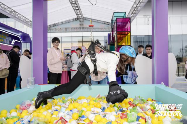 在元宇宙游戏中,玩家操纵角色在虚拟小米南京公园的跑酷中收集章节,在线体验“超现实”的公园场景。很多人玩着抬头看着整个会场,说你的公园真的很美——我觉得这也可能是虚拟和现实相互映衬带来的体验。