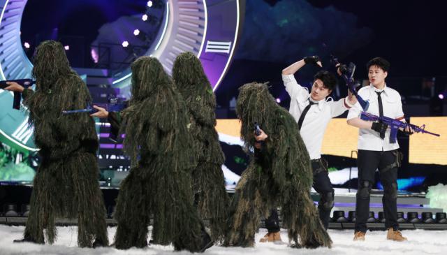 活动内场由张大大主持,华晨宇、宋茜、田曦薇、虞书欣等领先的服装秀——近百位明星表演了《和平精英》中数百套高热肌肤。