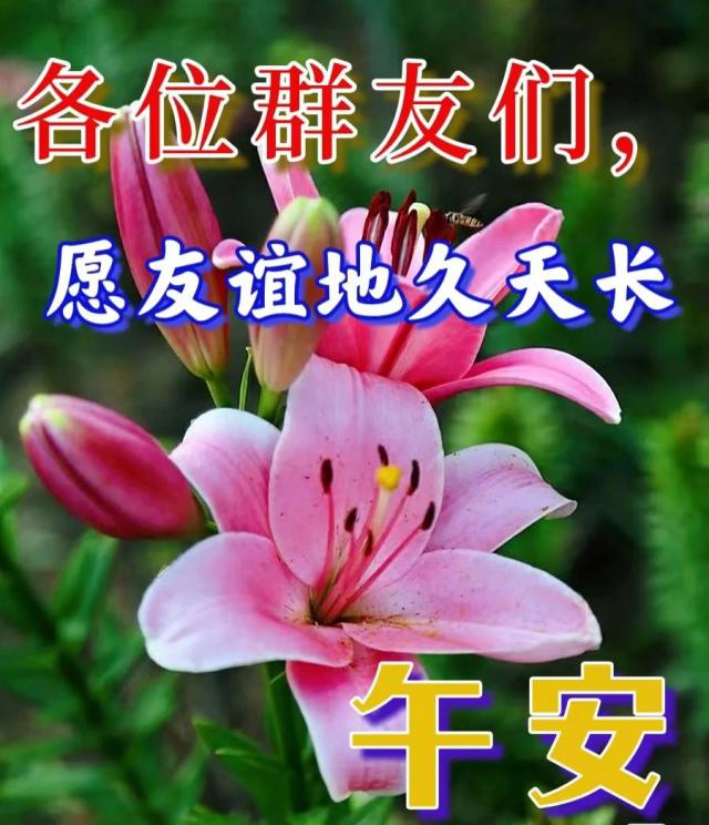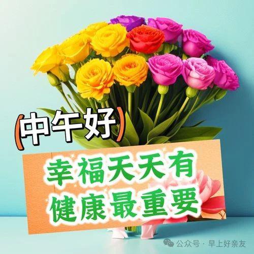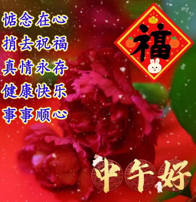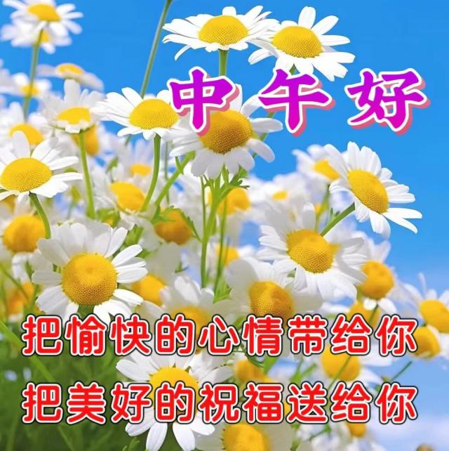 温柔的问候,带给我亲密的关怀;淡淡的思念,带走我真正的思念;深深的真情,传达我真挚的祝福;深深的祝福,送上我美好的祝愿;新的一天,祝朋友们幸福快乐!中午好!
