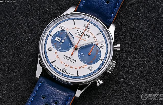 手表评价:宇联玩汽车元素是当今手表领域最有趣的玩法。宇联并不依靠与汽车品牌的深度合作,而只是热衷于古董汽车文化,从这些经典车型中汲取灵感,创造设计手表。也在今年 9 月份,宇联再次以经典赛车涂装和海湾石油蓝橙色配色为灵感,创造了这款诺拉敏斯计时手表。 2024 年度萨克森古董车拉力比赛限量版。诺拉敏斯计时表本身主要推广干净利落的复古记时风格,但是在融入了鲜明的蓝橙色配色之后,确实更有活力。42 mm表壳略大,但也让盘面有更多的表现空间。宇联抓住了这一点,在表盘上增加了很多新的细节。比如最能代表跑车元素的色圈测量刻度就放在表盘里,橙色的刻度压在蓝色的眼睛副盘上,无论是可读性还是美观性都非常出彩。配一块手表 UNG-27.S2 对于经典的机械机芯,宇联 ETA 7750 机芯改革而来,升级无卡度加上硅游丝,以及后上精致的装饰,使其无论性能、颜值都非常扎实。