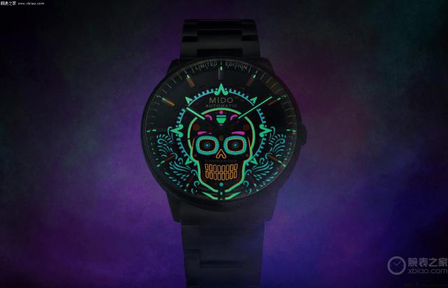 手表评价:为了向墨西哥最古老的节日亡灵节致敬,瑞士美度手表推出了指挥系列“亡灵节”限量版手表。也许你看完《寻梦之旅》会对这个节日有所了解。如今,受墨西哥最著名的雕塑阿兹特克太阳石的启发,美度创造了这个以五颜六色的代表骷髅为主题的指挥官,让这个系列以简约大气为主,以宽阔的盘面为标志性经典手表,充满活力。但是这块手表吸引我的是,美度对细节或者整体刻画都是充分考虑的。首先,六点位置的大日历窗口和骷髅牙齿设计相结合,完全不会影响精致的盘面刻画。每天晚上,点缀着八种莹光色调的骷髅和代表性阿兹特克太阳石图案都会绽放夜光。就硬件数据而言,42 mm黑色 PVD 精巧的表壳和表链处理,与常规风格没有什么不同,包括机芯方面,美度使用的是 Caliber 80 这个机芯由自动机芯组成 ETA C07.651 改进而来,满链可以提供 80 小时动储。