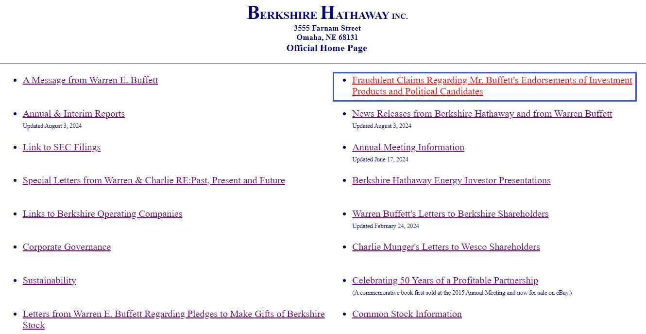 同一天,巴菲特还向CNBC解释了为什么上述声明会在伯克希尔网站上发表,称网上假冒他的行为令人担忧。巴菲特说:
