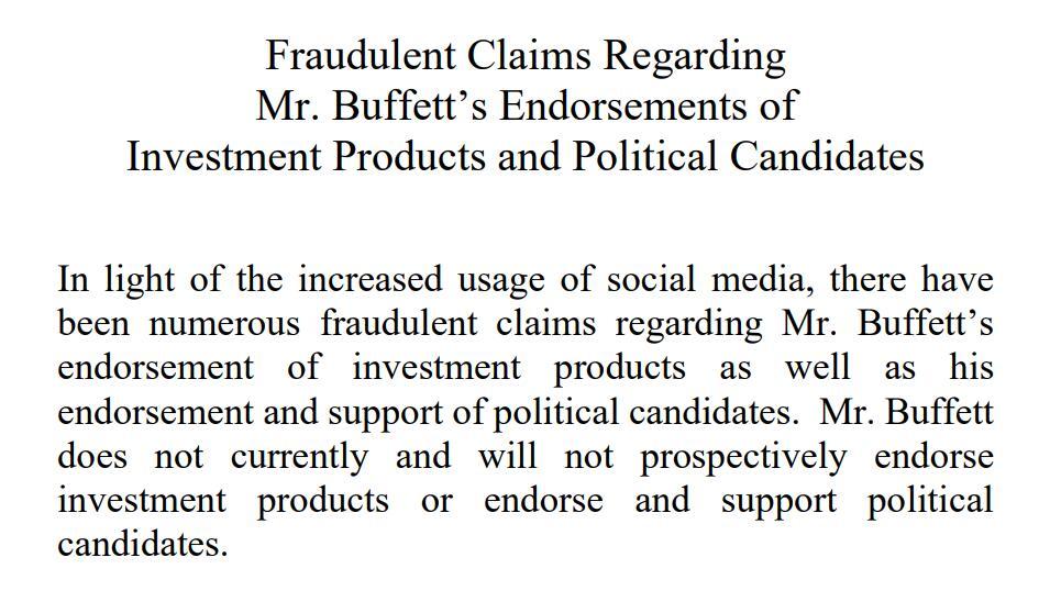 AI假货不要蹭流量!巴菲特宣布澄清,不要为任何总统候选人站台。