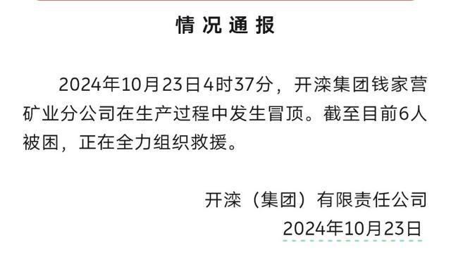 大皖新闻讯 10 月 23 日凌晨,位于河北省唐山市的钱家营矿业子公司,在河北省唐山市生产过程中出现了顶峰。 6 人们被困,被困者的安全也影响着人们的心灵。十 月 23 日深夜,大皖新闻记者到达事发现场,看到公司门口有交警和保安值班。现场一名警察表示,救援工作仍在继续,被困人员尚未获救。