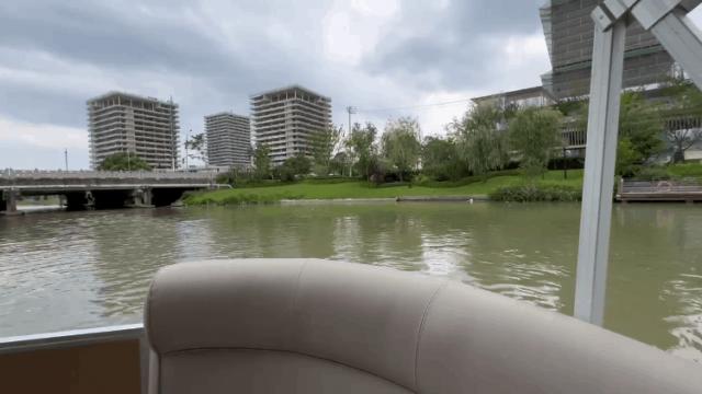 甚至,保利还特意安排了一艘游轮,在两个地块之间慢慢漫游。