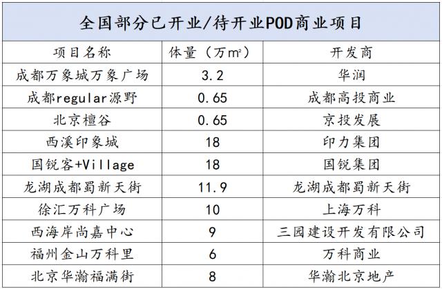 目前,万科、龙湖、华润等头部商业房地产公司正在陆续进行。 POD 项目的开发