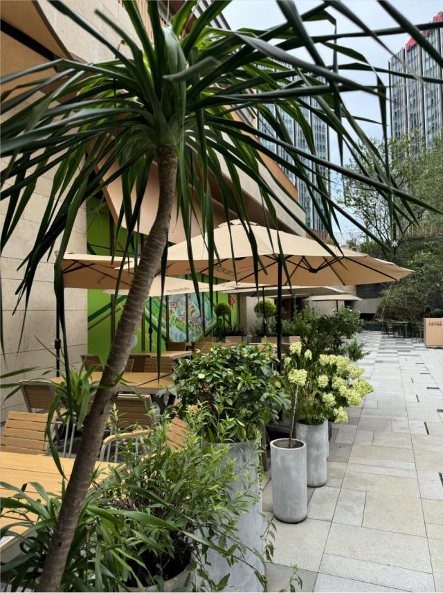 别有用心的是,绝大多数商业外摆也采用了植被装饰设计。