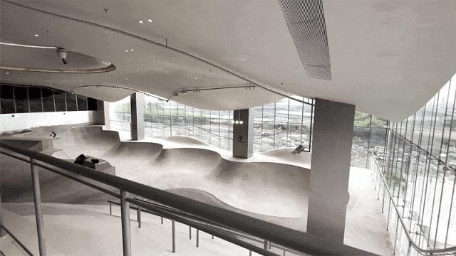 在商业内部,引入了一个总面积约。 2000 室内滑板场地平方米酷炫