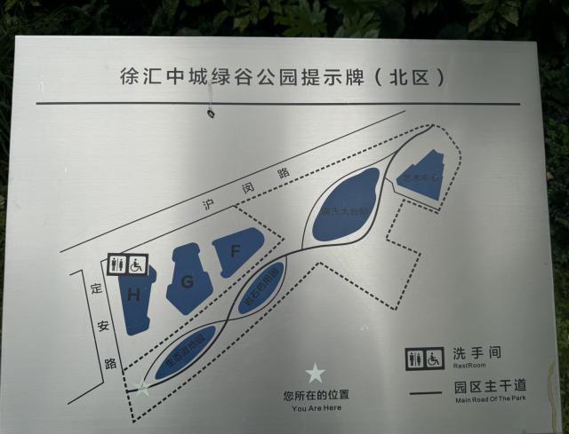 这个描述很生动。因为俯视的公园,中央绿轴真的像绿色的地毯一样流动。