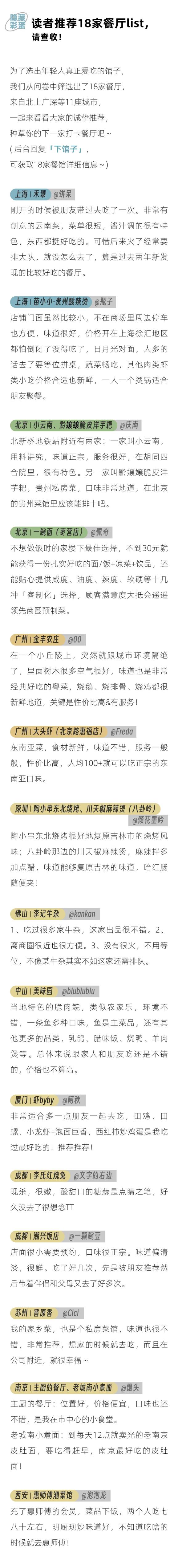 你们现在还喜欢在外面吃饭吗?有什么推荐或防雷餐厅?请在评论区分享您的观点~关注后浪研究所,在后台回复“外出就餐”,可以获取本文推荐的18家餐厅的详细信息。~