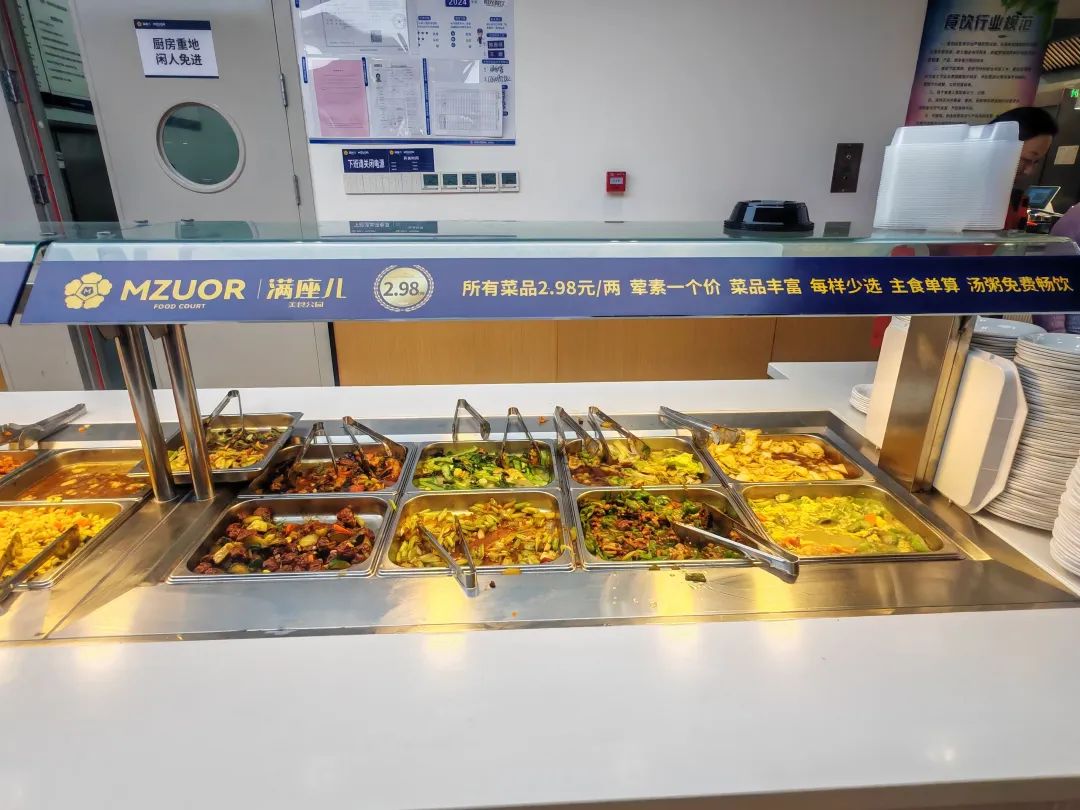 称重自选菜区,荤素一价,顾客自主选择,再称重,晚餐单算,汤粥免费畅饮。