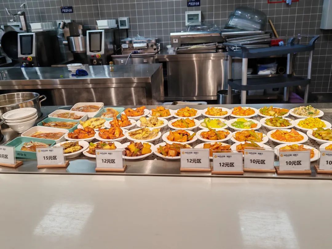 还有一些食堂,增强了老年人专区,包括老年人选择手推车、桌面服务呼叫器等设施,满足了社区周边不同年龄段的用餐需求。